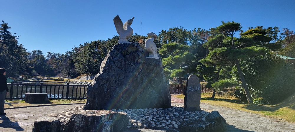 スイレン池。鯉。ハスが花咲き、庭園風に整備されている。 池は庭園風に美しく整備され、池畔には25年連続で全国の国民宿舎での宿泊率1位に輝く施設が立っている。敷地内には日帰り温泉も。